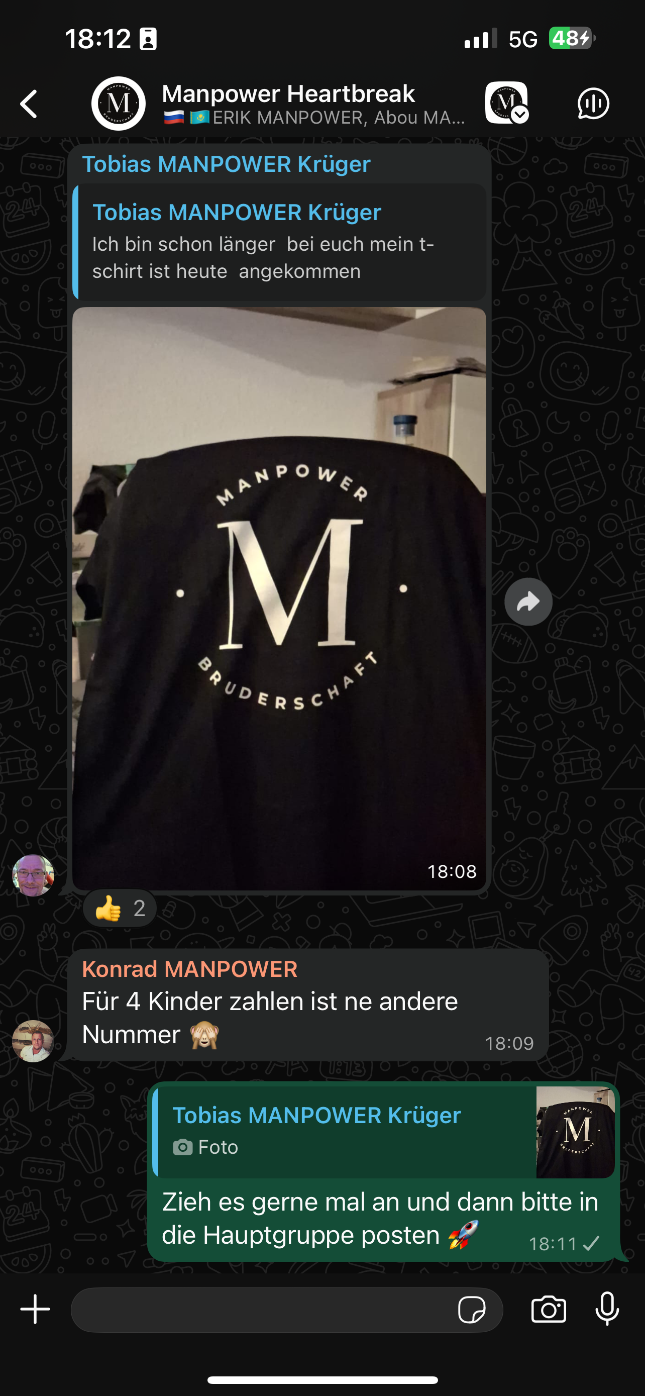 Manpower Bruderschaft – einer mächtigen Gemeinschaft von Unternehmern, Ärzten, Anwälten, Polizisten, Handwerkern und Profisportlern. Unser Logo und unser Zeichen symbolisieren die Stärke und den Zusammenhalt unserer Bruderschaft. Gemeinsam zeigen wir der Welt, wie mächtig MANPOWER sein kann. Unsere Kleidung trägt die Energie und das Selbstbewusstsein, die unsere Gemeinschaft ausmachen. Bei uns ist jeder willkommen – unabhängig von Beruf oder Herkunft. Wir sind eine Einheit, die mit Kraft und Entschlossenheit voranschreitet. Zusammen sind wir unaufhaltsam.